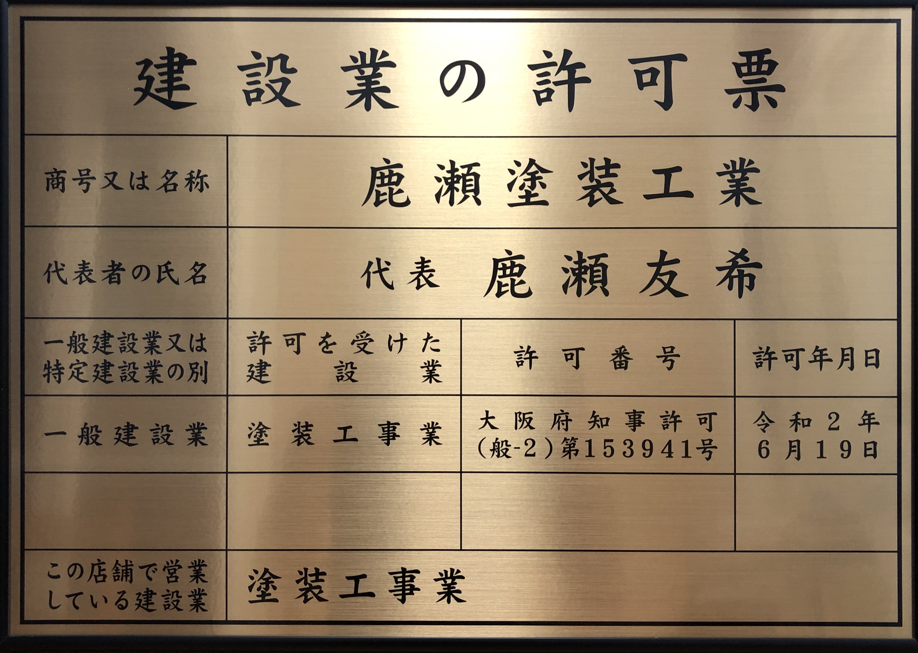 大阪府知事 許可(般-2)153941号 |